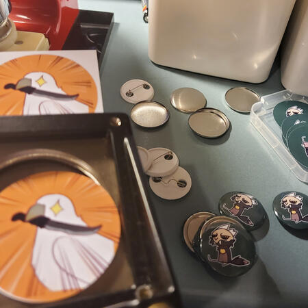 I offer prints, button badges, charms and other merch!I also bring some plush to cons on my table :>At cons i do offer table commissions and will plan to have "take home" commissions availableAn online store is being set up and will be open soon!